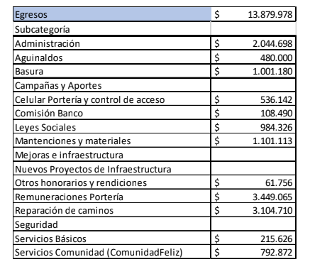 Cualquier egreso relacionado a los chips de celulares de la comunidad, como también al sistema de acceso Dapta en el portón.